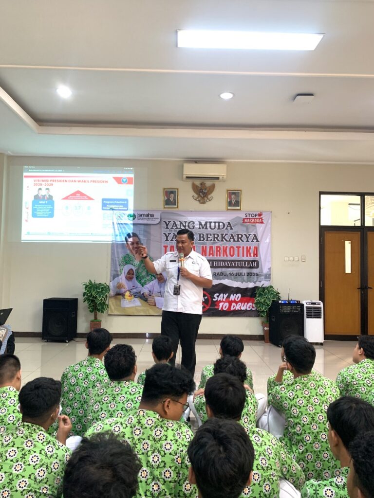 Pada hari ketiga ini, SMAHA menggandeng BNN (Badan Narkotika Nasional) Jawa Tengah untuk memberikan penguatan karakter pelajar anti narkoba. Kegiatan tersebut dilaksanakan di ruang meeting dan diikuti siswa kelas XI. Bapak Dela Sulistiawan Y, S.I.Kom., M.A., selaku Katim Kehumasan BNN Prov. Jateng sekaligus pembicara dalam kegiatan ini menyampaikan bahwa saat ini Semarang menjadi salah satu kota di Jawa Tengah yang paling rawan dalam penyalahgunaan narkoba. Beliau juga merasa sangat prihatin karena pelaku penyalahgunaan tersebut sebagian besar adalah pelajar SMP-SMA. “Generasi muda merupakan generasi yang akan menyongsong Indonesia Emas pada 2045 mendatang. Untuk itu, pesan saya untuk para pelajar khususnya pelajar SMAHA adalah pilihlah teman bergaul yang baik dan produktif. karena teman yang baik dan produktif akan memberikan dampak yang positif bagi kita. Begitu pula sebaliknya”, tambah Bapak Dela saat menutup kegiatan sosialisasi.