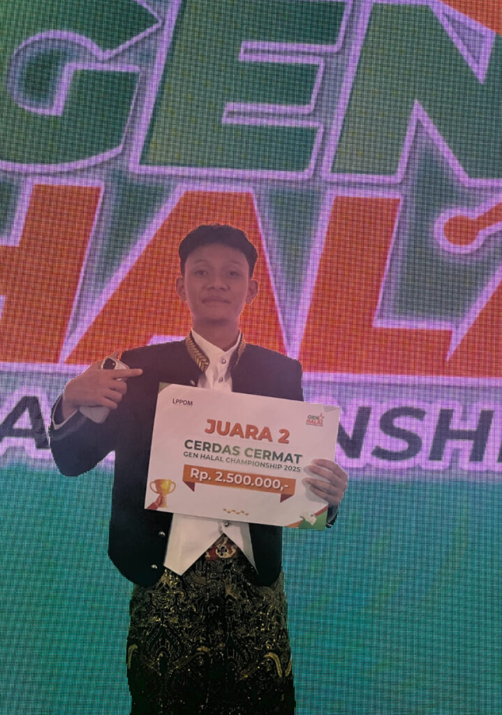 Bogor — Prestasi membanggakan kembali ditorehkan oleh siswa SMA Islam Hidayatullah (SMAHA). Maulana Anas Waluyo, salah satu siswa terbaik SMAHA, berhasil meraih Juara 2 Lomba Cerdas Cermat dalam ajang Gen Halal Championship 2025 yang diselenggarakan oleh LPPOM (Lembaga Pengkajian Pangan, Obat-obatan, dan Kosmetika) Majelis Ulama Indonesia (MUI).